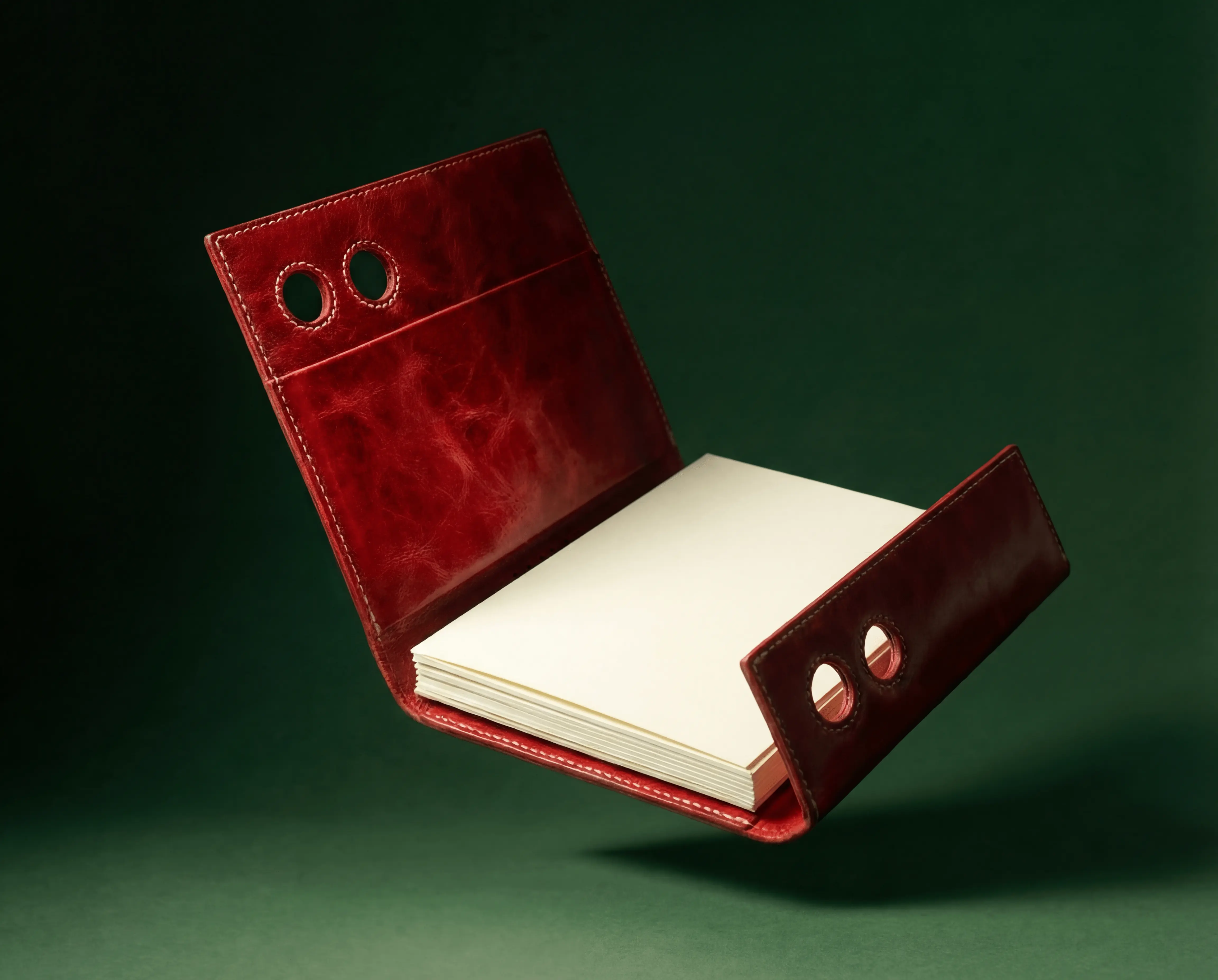 Está formada por dos piezas: una carátula de cuero que perdura y tomos de papel intercambiables.
